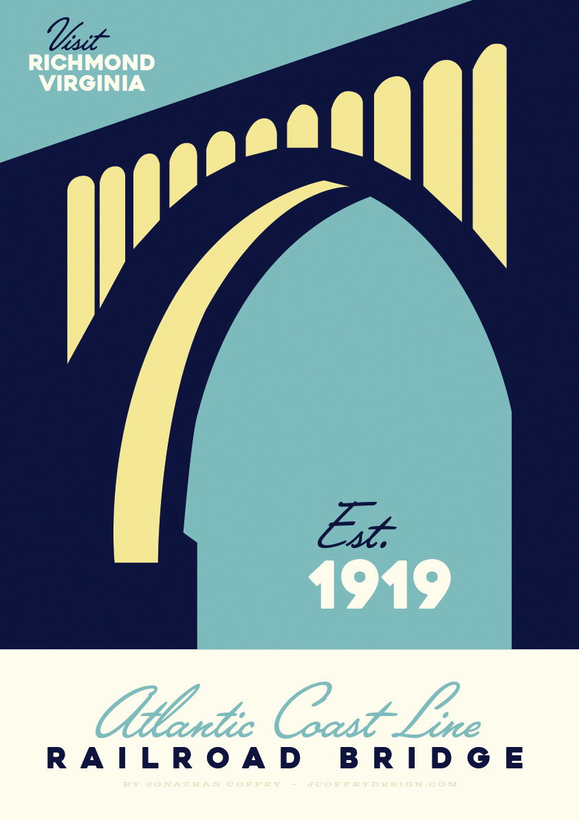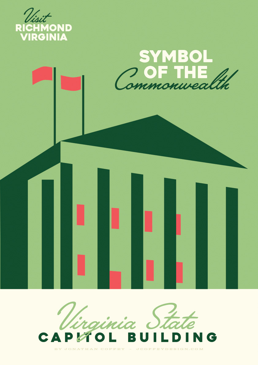 A series of posters showcasing some of Richmond Virginia's iconic landmarks. Inspired by works from the first half of the 20th century.