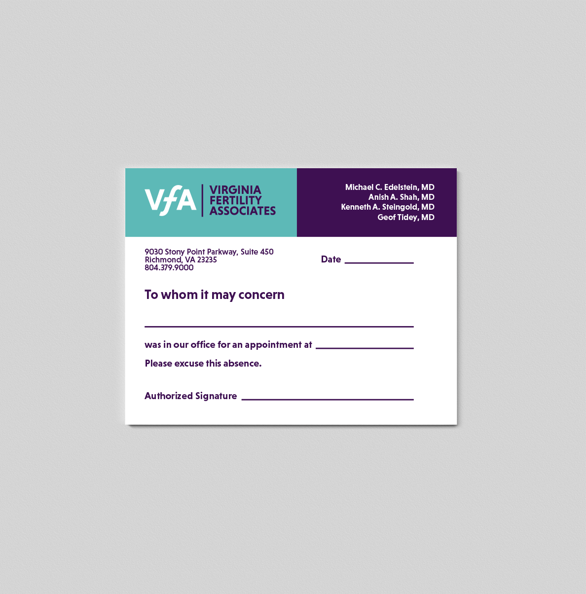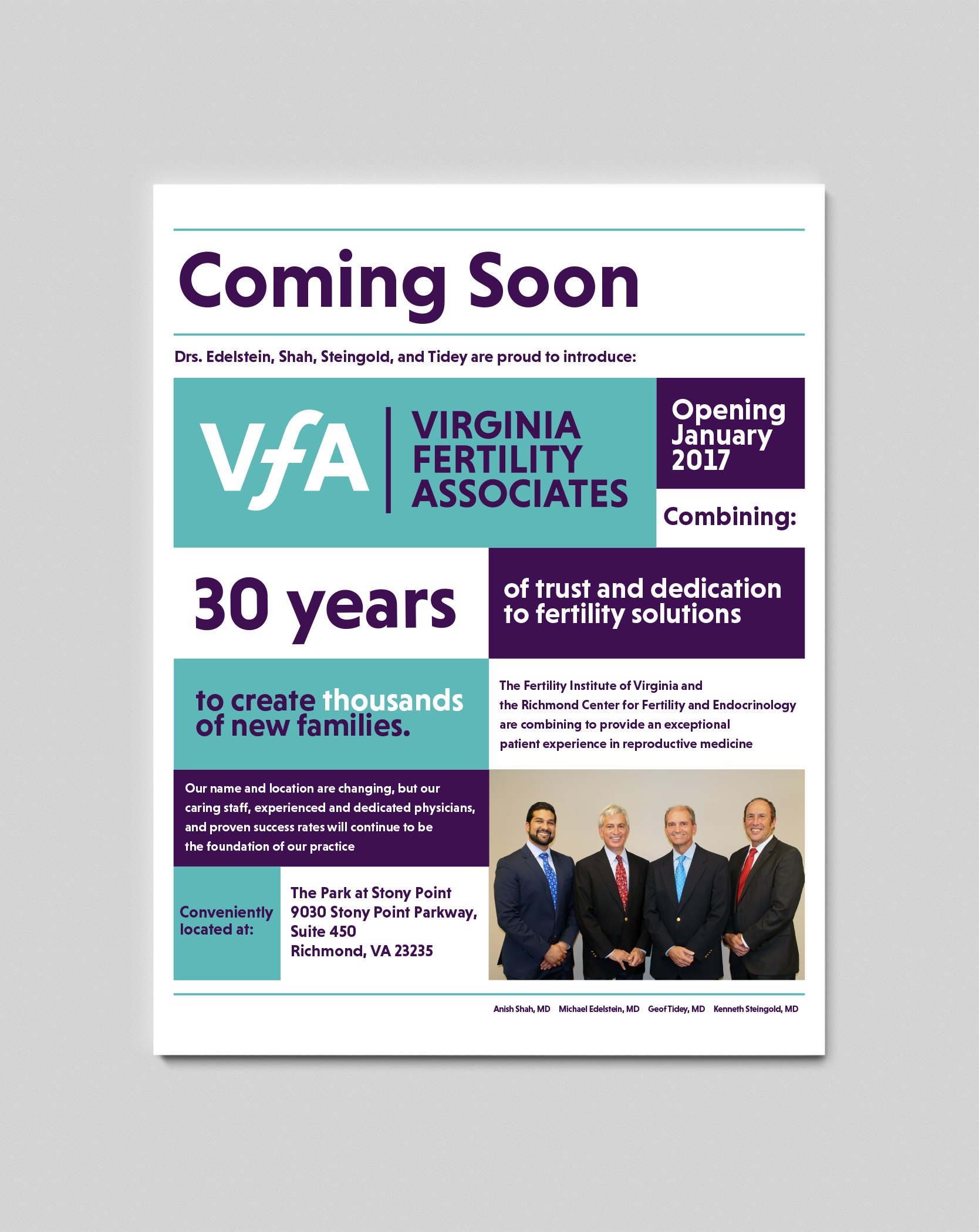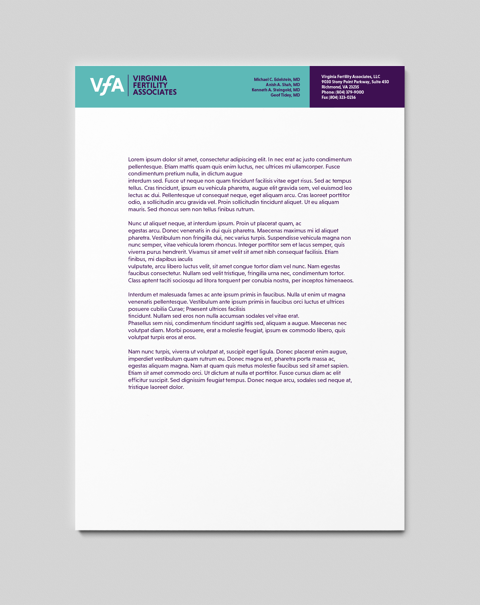 Identity for Virginia Fertility Associates, a medical practice based in Richmond, Va